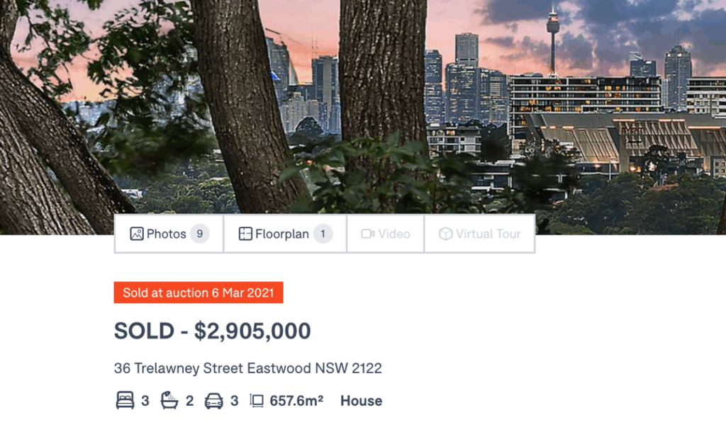 例如这套位于Eastwood的三房别墅在上周末拍到了290万;