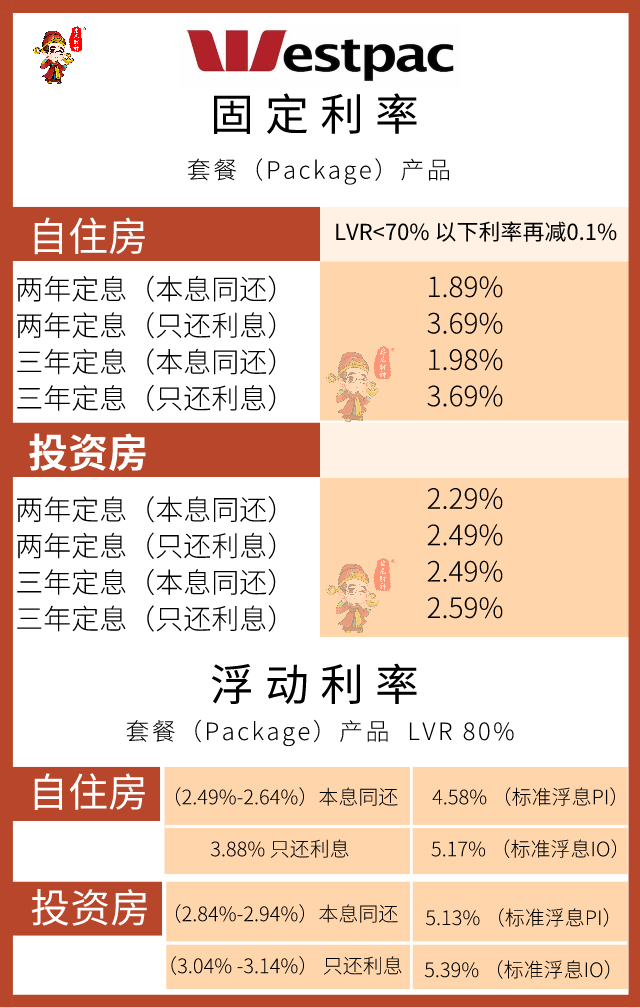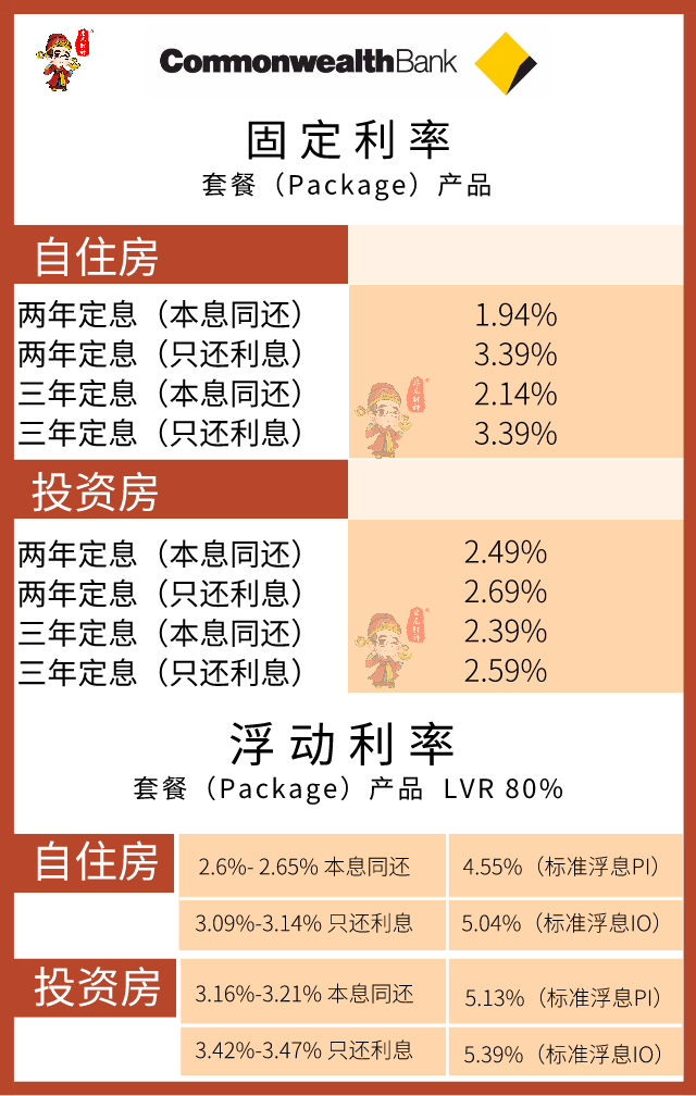 注明:借款人通常拿到的房贷浮动利率,是银行标准浮动利息(standard variable rate)减去折扣(life timediscount)才是最终的到手的利率。