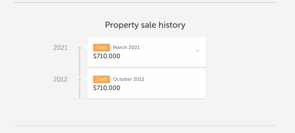 再看看这套位于悉尼奥林匹克公园的物业,2012年以71万的价格买入,2021年卖出的价格为71万,9年没有涨幅。