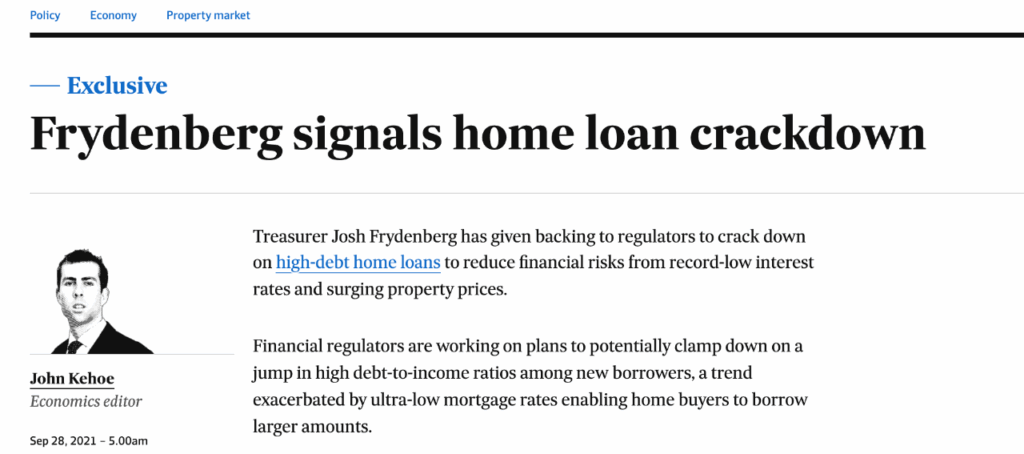 财长近日表示支持监管机构打击高负债房贷,随后审慎管理局(APRA)正式宣布,准备在两个月内重新“释放”一些贷款限制的措施。