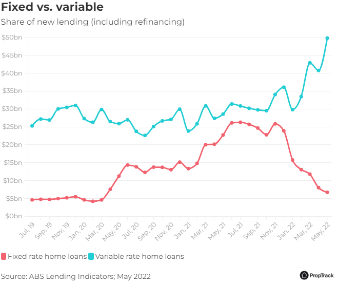 固定利率贷款在2021年年中达到顶峰。当时的现金利率仍为0.1%,一些贷款机构提供的固定利率低于2%。