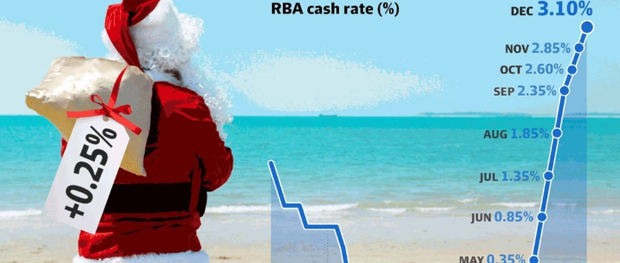 澳大利亚央行在2022年最后一次月度董事会上,宣布自5月来连续第8次上调官方利率,在圣诞季到来之前将利率再度上调25个基点。