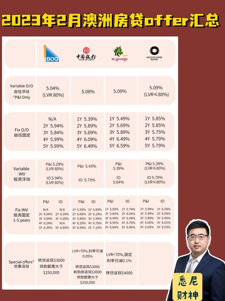 澳洲各大银行纷纷跟进央行的加息幅度,截止本月底借款人自住房浮动利率基本都是5.**%开头,所以2023年对于澳洲大部分家庭而言,贷款的支出将会是严峻的挑战。