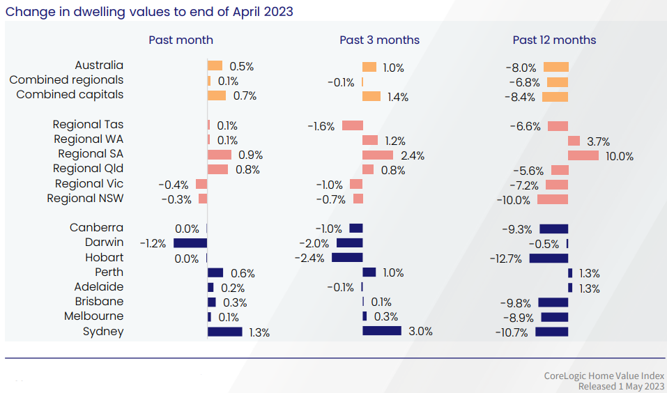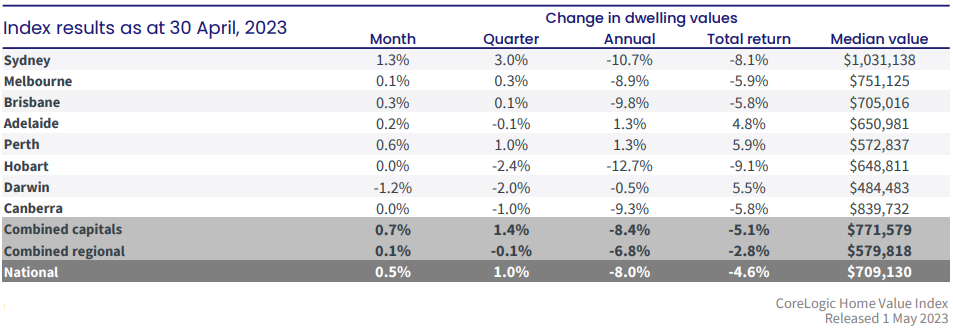 悉尼引领了住房状况的积极转变,4月份住宅价格上涨1.3%,自2月份以来每月都在上涨。