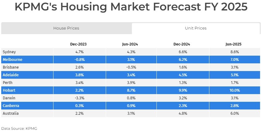 但预计有主要地方差异,到下一个财年末,珀斯的独立屋价格涨幅最高,为8.4%,但霍巴特在2025财年超过其他城市,以14.2%的涨幅居于首位。