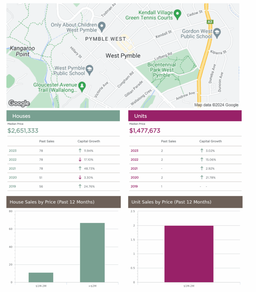 West Pennant Hills 均价已经在240万左右,所以250万的预算在这里找到中意的房子比较困难,Pennant Hills、Castle Hill和CherryBrook均价在220万左右,所以250万的预算这三个区的机会很多,大家可以参考一下图片。