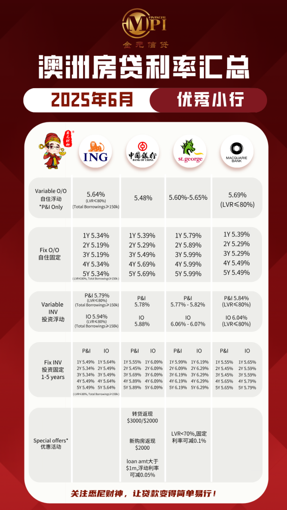 自住房浮动利率(P&I) 普遍落在5.70%-5.80%区间;
